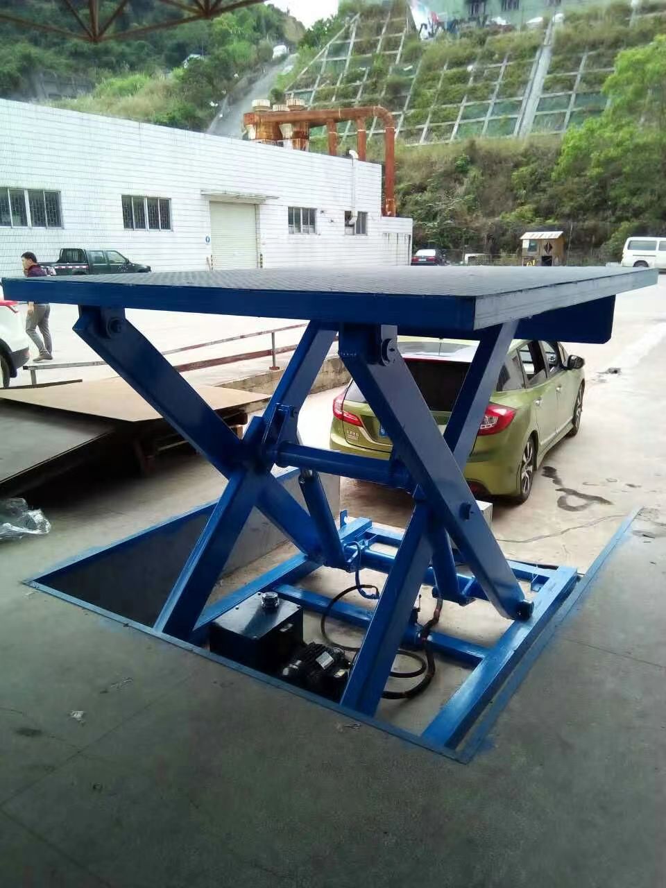 固定式剪叉升降平臺通常由三部分組成:平臺、剪式升降機構和底座。平臺位于頂部,主要承受載荷,供工人進行各種高空作業。 固定式剪叉升降平臺是升降平臺的關鍵部件。不同的升降平臺都有自己的剪刀升降機構。從低起升到高起升,剪桿數量增加,液壓缸的布置形式也不同。固定式剪叉升降平臺機構的臂數和液壓缸的布置形式取決于升降高度?! 〉鬃挥诘撞?,有支腿、輪胎、油箱和其他部件連接在上面。 位移放大 固定式剪